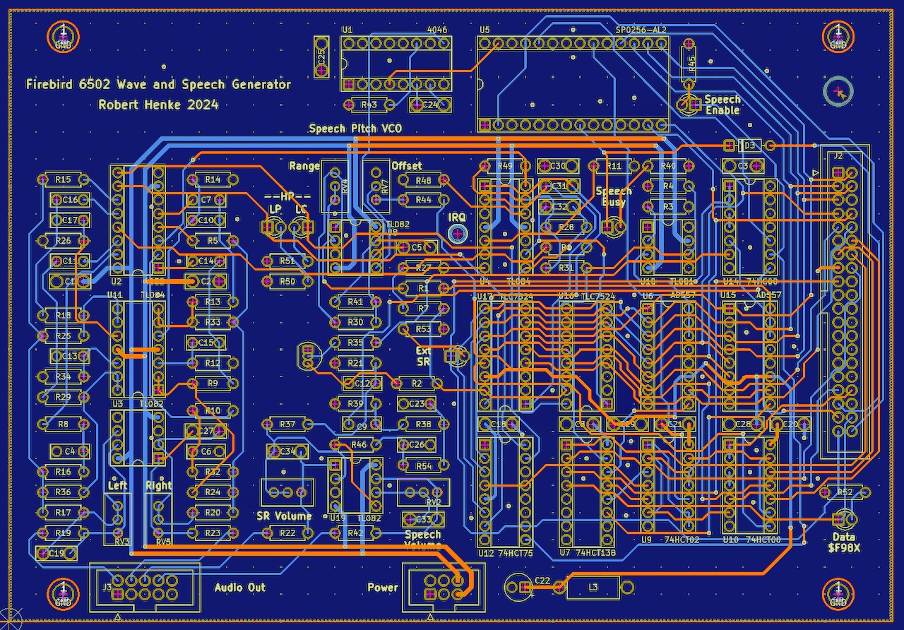 Firebird is a simple 8 bit computer, based on a 6502 CPU, running at 1MHz. It has been designed in 2021 specifically to act as a clock generator within the CBM 8032 AV project. The initial hardware design already supported the addition of a sound card, work on it stared in summer 2024, see bottom of this page! Photo by Bela Borsodi [link]