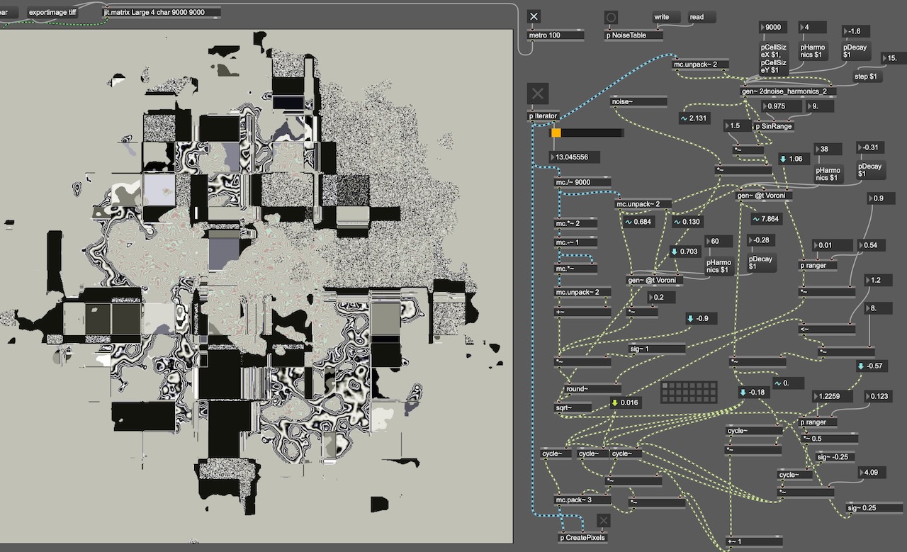 Results considered good are rendered in high resolution and their code, parameters and noise series are archived for future re-creation or modification into something new.