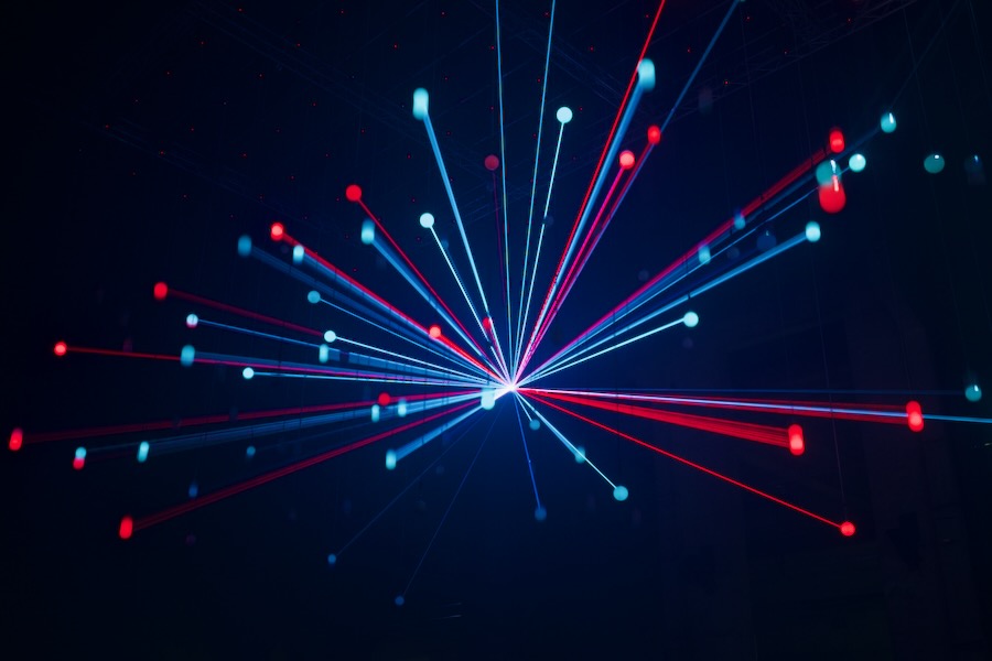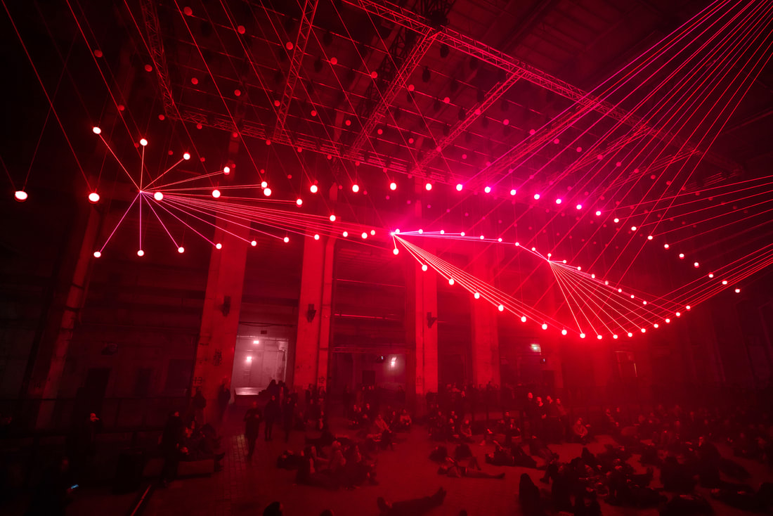 Deep Web is a kinetic audiovisual installation consisting of a floating matrix of 175 illuminated spheres floating above the audience.