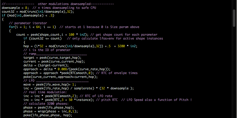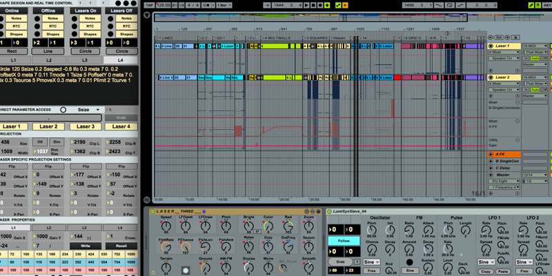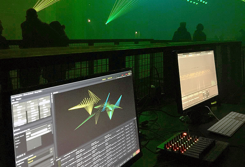 [2016-12-29] two years ago I wrote a lot of code to make Lumiere II happen. Now it is time for some major enhancements, both on the visual and on the auditive side of things. I spent the last weeks working on improvements of the visual engine, and the last week on the dedicated synthesizer for that project. The challenge is the ability to switch presets rapidly without any additional CPU consumption, and to also react in a meaningful way to a set of controllers which define both the behaviour of the lasers and of the sound synthesis at the same time. Parameters like a global 'Speed' control, which scales the envelopes in the laser pattern generators and in the synthesis engine simultaneously. The new version of the sound generator is internally a complete rewrite, making it possible to add features more easily and expand its capabilities. One of the goals for Lumiere III is a very much refined sound design. The tools for that are nearly ready.