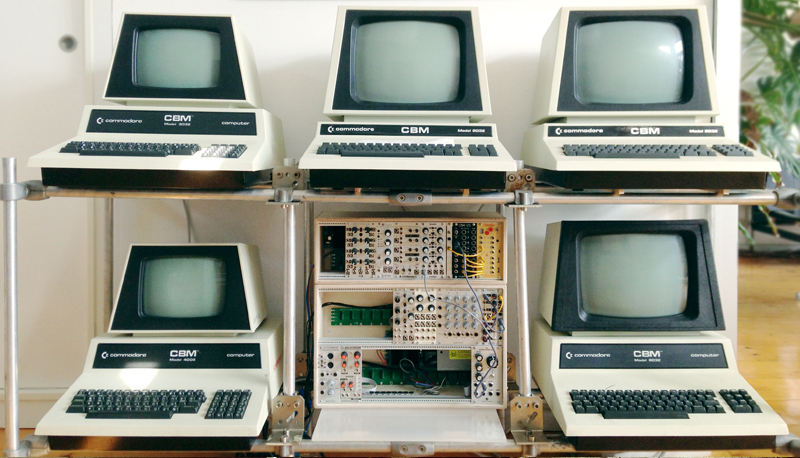 [2016-06-12] A list of recent victories concerning the 8032 Series project: I managed to write a first test routine triggered from the outside world (a button on a bread board) via a NMI [geek link]. That opens up nice perspectives for using the modular synthesis rig as clock source for sound and graphics processing: The CBM can be slaved to a step sequencer!!! I implemented a lousy PRNG, and I found a reverse engineered algorithm of the noise generator inside C-64's famous SID chip. Will give this one a try later. I managed to pipe out the result of my noise generators via the User Port and recorded some nice digital glitchy things. Not exactly 'white noise' but cool. I step by step make my way through the basics of 6502 machine language. It is tedious but also pretty amazing. Very zen-like at the core of pure logic. consider expanding this mad project into a seriously mad one by not only touring with one CBM 8032 but 4 or 5 of them, using one for graphics and the others for sound. Benefits: more options, less programming headache, looks cooler, more is always more on stage. Downside: No more air travel with that, it all would need to be shipped. Thus, more expensive. But it would be cool for sure... Need to monitor Ebay etc. now to get more machines. Oh, and yes, I still make music! Going out and having sleep is a bit reduced though.