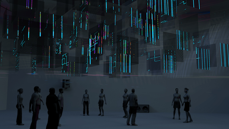 2016-04-28. It turned out that spending time on pre-visualisation of installations is a good thing. The rendering captured the look of the final work better than I thought. Will dive deeper in Cinema 4D now. Fall is also the first installation that uses my new unified laser pattern gernerator (LPG) as its basis. It started as the modular engine for the Lumière project and turns more and more into a general purpose laser vector graphics environment which I plan to use as the core for all upcoming laser works including Lumière III. 2016-04-19. Fist full day of setting up the Fall installation. I had to change a few things as usual, but the basic concept of projecting with two lasers onto the fragmented cube of 180 squares of fabric seems to make sense and look good. We managed to get 1/3 of the squares up today, which is a bit better than my estimation. So, all runs according plan.2016-03-29. First successful attempt to write 6502 machine language for the 8032 Series project. Little routine inverts first character on display. Or, as the computer says: LDA 32768, ADC 128, STA 32768, RTS. Writing it all in HEX on paper is a bit masochistic, though. I need an assembler for the CBM.