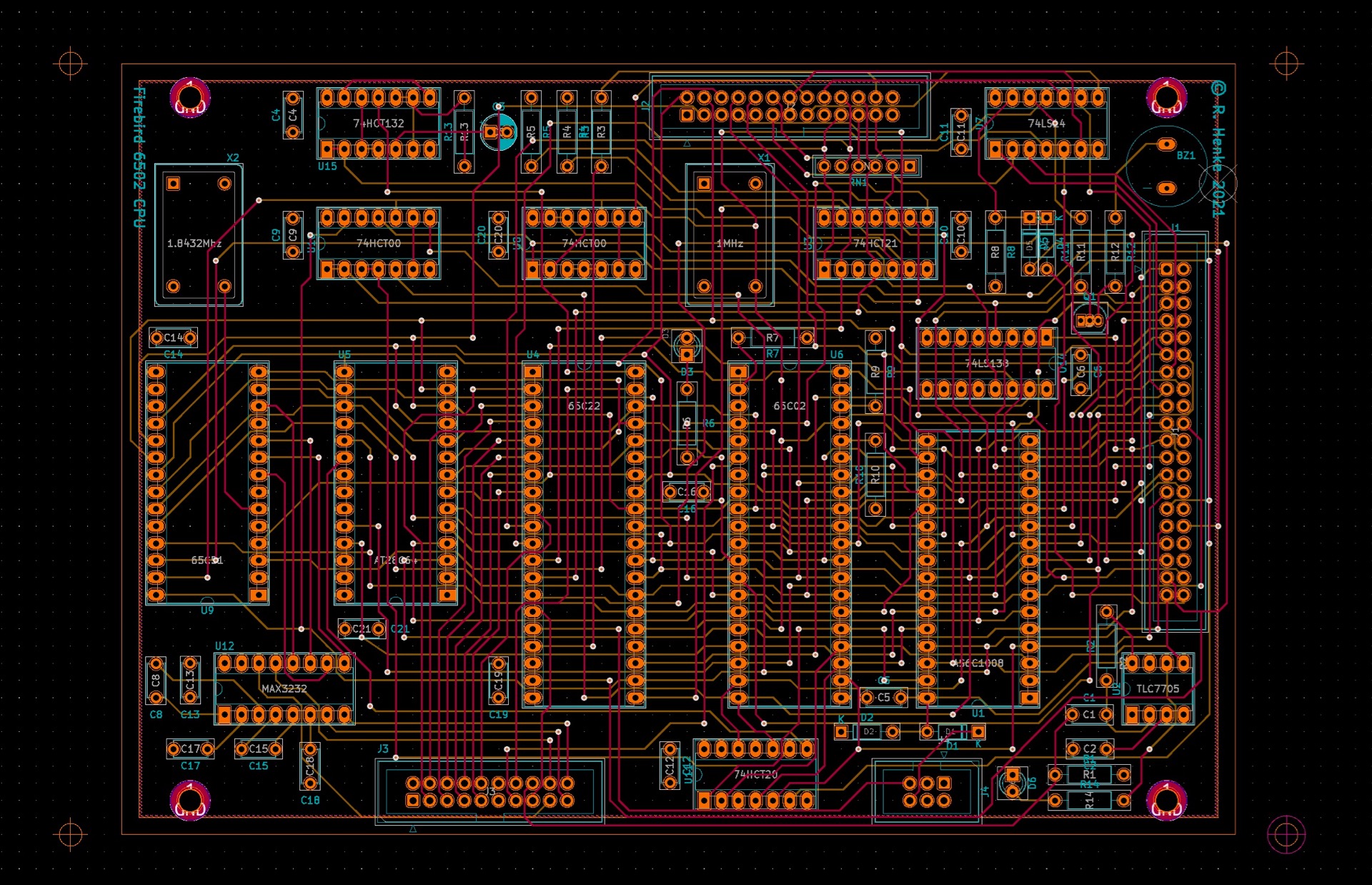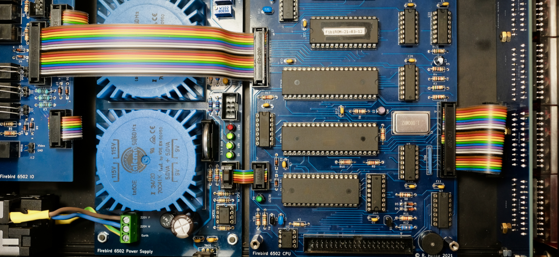 Firebird is a simple 8 bit computer, based on a 6502 CPU, running at 1MHz. It has been designed in 2021 specifically to act as a clock generator within the CBM 8032 AV project. The initial hardware design already supported the addition of a sound card, work on it stared in summer 2024, see bottom of this page! Photo by Bela Borsodi [link]