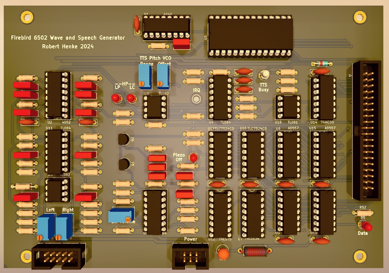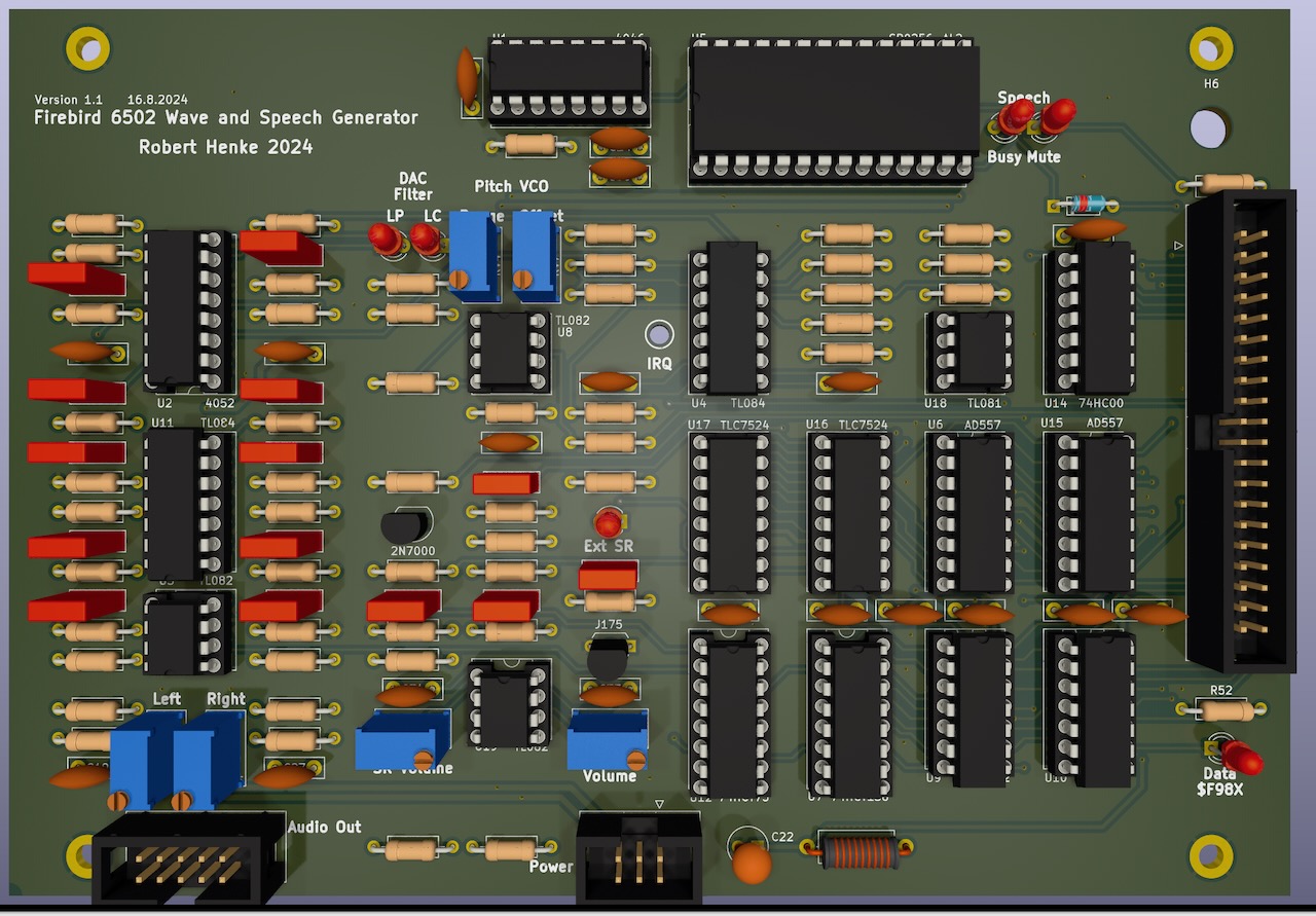 August 16 2024: Speech synthesis works and is a lot of fun! Came across a few more minor issues, and decided to re-do the board. Found a way to reduce the signal to noise ratio from the speech synthesis by at least 10dB and by doing so now have a better method to mute the synthesis without clicks as a nice side effect.