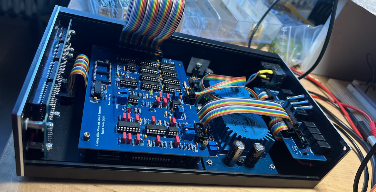 From left to right: I/O board, power supply, CPU board, display board. Still missing is the audio DAC board and potentially a graphics / CRT control board, which will both sit on top of the CPU board.