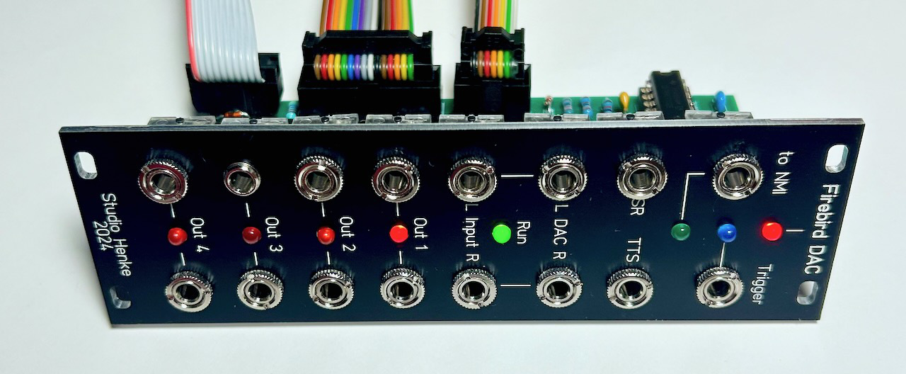 November 12 2024: Towards integrating Firebrid into my studio setup. This is the electronics of a Eurorack modular breakout box, allowing to route the audio outputs including speech synthesis into a modular environment. It provides four individual outputs that can be assigned to sounds, and also trigger inputs and outputs. The sound synthesis software has been updated to enable the new routing feature and to detect the presence of the breakout box.