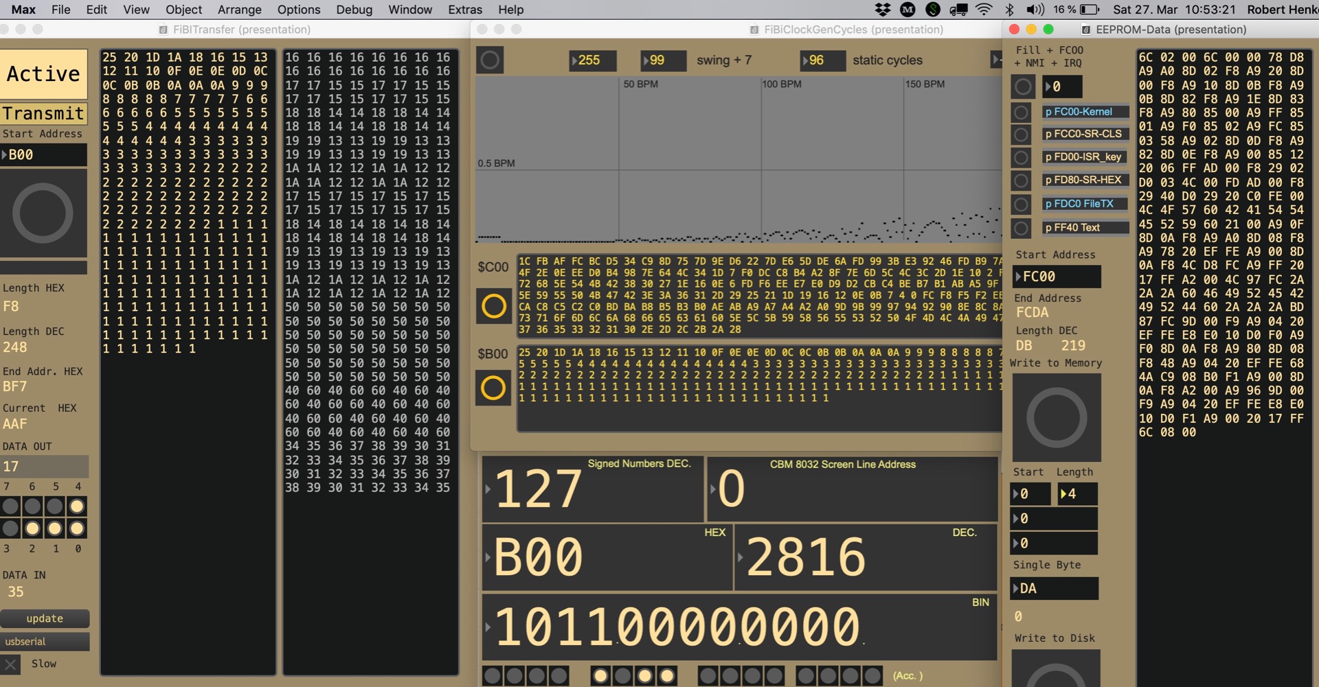Firebird in action as clock generator on stage of the CBM 8032 AV performance.