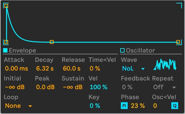 Apart from the normal playback mode, the envelopes offer three more behaviours: Trigger plays through the complete envelope when a new note starts, independently of the note length. This is often very desirable for percussive sounds. Loop plays back the envelope segments repeatedly as long as there is a note held, and the Beat and Sync modes re-trigger the envelop at specified beat time intervals. Some of the sounds in my twenty years of Operator pack make excessive use of these modes.