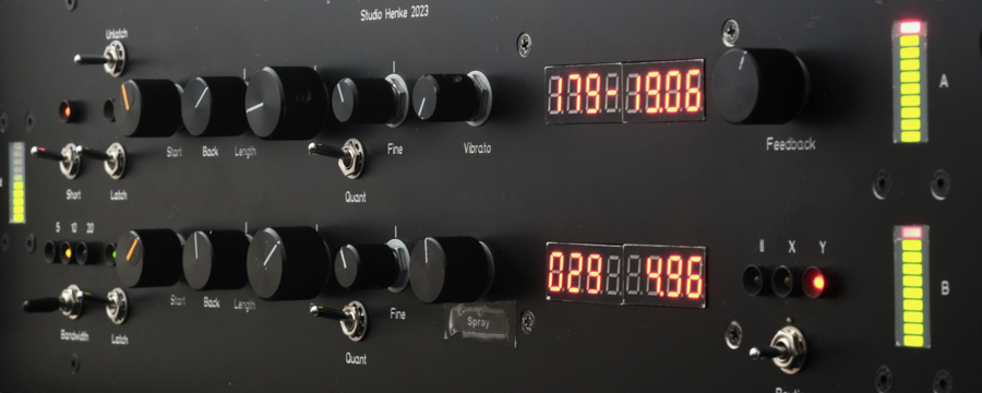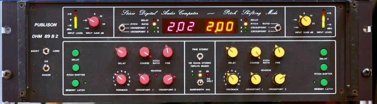 The Publison DHM89-B2, a pitch shifter & looper from 1978 plays an important role for the sound design of the CBM8032AV performances. Unfortunately, the original hardware does not appreciate being carried around anymore. Instead, I built a more contemporary solution: A hardware that fits in the rack where the original unit was before. It controls a variation of my PitchLoop89 effect, which is already modelled after the DHM89. The intention of both the hardware and the software is not to create a 100% replica but an inspired version that is close to the original where required, but departs where desirable.